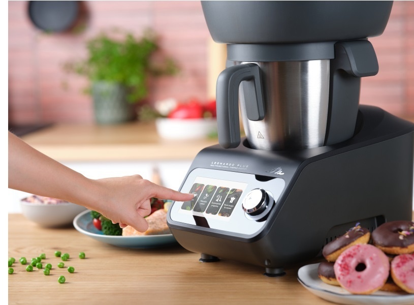 ETA Leonardo Plus combina functiile de mixer, blender, aparat de gatit cu abur si cantar de bucatarie, economisind timp si spatiu. Datorita memoriei cu retete presetate, robotul va ghideaza pas cu pas pe tot parcursul procesului de gatire, fiind potrivit inclusiv pentru incepatori.